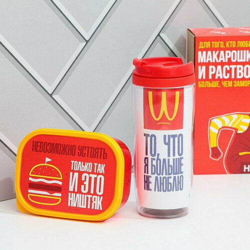 Импортозамещение»: термостакан 350 мл, ланч-бокс 500 мл-Вес: 306 г.-Фасовка: 1 шт-Тип индивидуальной упаковки: Подарочная коробка-Длина упаковки: 7.5-Высота упаковки: 18.5-Ширина упаковки: 17.5-Объем упаковки: 2.428-Объем продукта: 2.8772-Объем бокса: 103.579-Материал: Пластик-Набор: Да-Цвет: Красный-Для кого: Унисекс-В наборе, шт: 2-Вид упаковки: Подарочная коробка-Рисунок: Да-Адресат: Без адресата-Составляющие набора: Ланч-бокс, Термостакан-Возраст: Для взрослых-Температурное ограничение: Нет-Тематика подарка: Посуда
