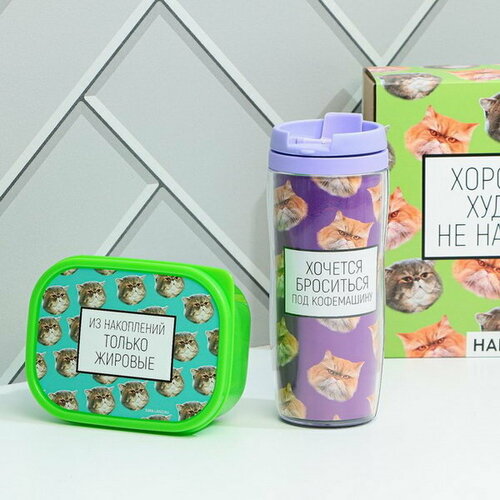 Подарочный набор «Толстые котики»: термостакан 350 мл, ланч-бокс 500 мл (комплект из 2 шт)