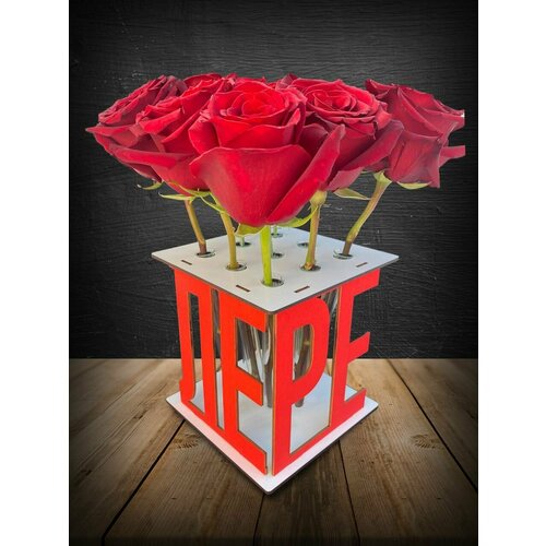 Подарок девушке - Ваза для цветов с подставкой "Вере"Уникальный подарок, который не останется незамеченным! Эта ваза выполнена из натурального дерева и имеет складную подставку с именем "Вера". Без ножек и без ручек, она имеет квадратную форму. Ваза подходит для создания уюта в любом интерьере и будет прекрасным украшением для любого праздника. Порадует своей уникальностью и подойдет для подарка дочке, коллеге, подруге, жене, любимой и т. д.