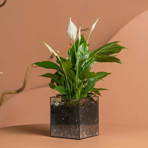 Спатифиллум в кашпо "Кубик", цветущее растение, женское счастье