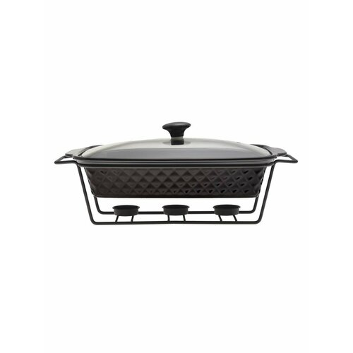 Мармит керамический прямоугольный 33см 2.4л со стеклянной крышкой на металлической подставке KAMILLE KM-6403