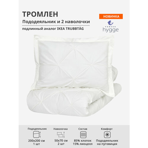 Цены на Пододеяльник 2 спальный, Feresa Hygge варба/VARBRACKA, 200х220см , бязь, аналог икеа белый, бежевый, белый в г. Москва