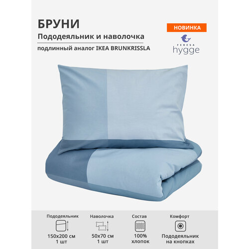 Постельное белье 1,5 спальное "Бруни", пододеяльник 150х200, наволочки 50x70 (1 шт) синий/голубой