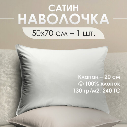 Наволочка Ventura Life из сатина 50x70см, 1шт, Белый