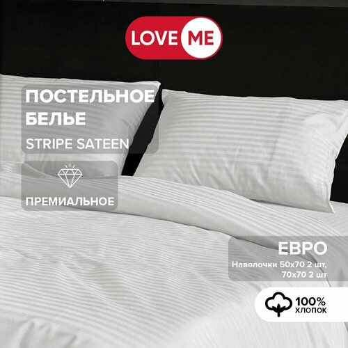 Комплект постельного белья Евро LoveMe, 2 нав 50х70 см, 2 нав 70х70 см, Royal, страйп-сатин, 100% хлопок