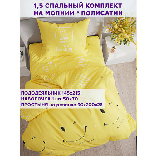 Постельное белье Simple House "SMILE" 1,5-сп наволочка 50х70 1шт Простынь на резинке 90х200 см Пододеяльник 145х215 см