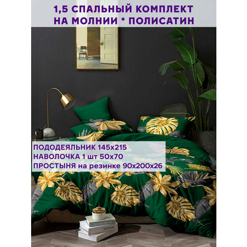 Постельное белье Simple House "Брахма" 1,5-сп наволочка 50х70 1шт Простынь на резинке 90х200 см Пододеяльник 145х215 см