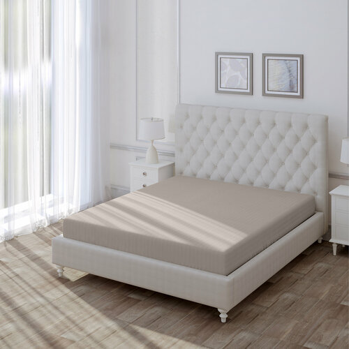 Простыня на резинке на матрас 20 см Волшебная Ночь полутораспальная 160х200 Coffee cream, коричневый, страйп дизайн, поплин, хлопок 100%