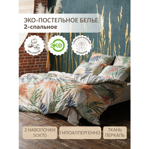 Комплект постельного белья Волшебная Ночь двуспальный 2 СП 200х220 Fern, пододеяльник 180х215, 2 наволочки 50х70, перкаль, хлопок 100%