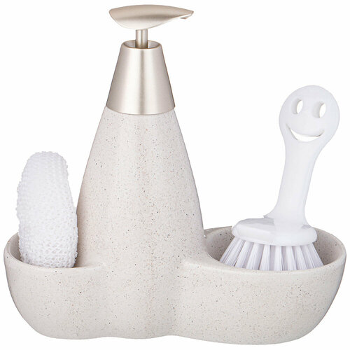 Диспенсер для мыла Lefard / Лефард 755-1007 с губкой и щеткой, керамический белый / дозатор для моющего средства