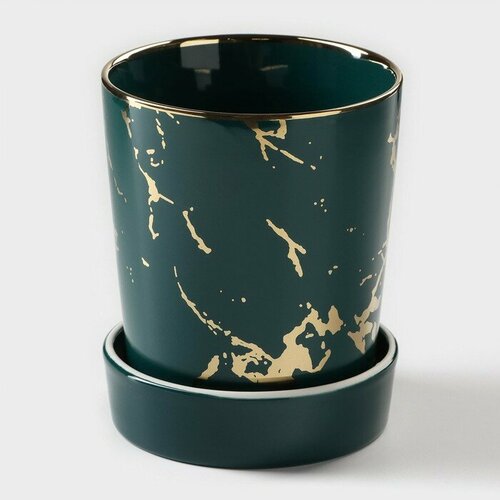 Подставка керамическая для столовых приборов Gold, 10,5×10,5×13 см, цвет зелёный