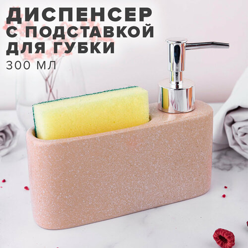 Диспенсер для моющего средства с подставкой для губки бежевый Good Sale