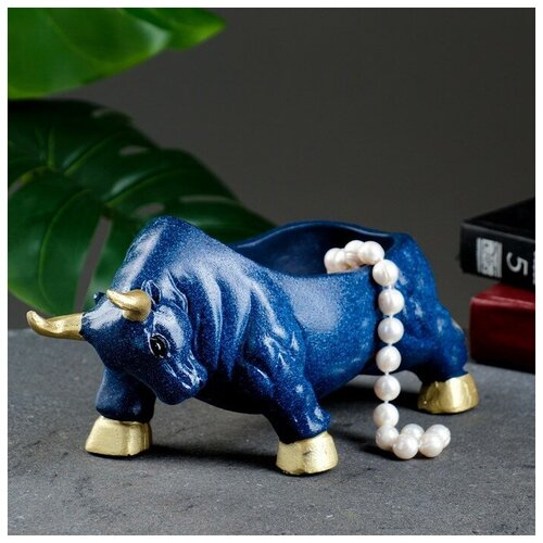 Подставка конфетница "Бык" синий мрамор, 12х24х11см