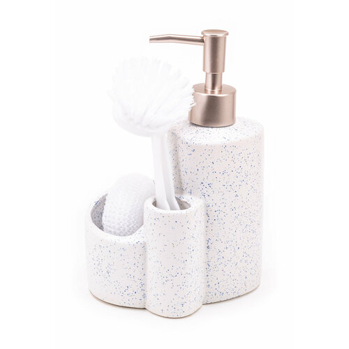 Диспенсер для мыла Lefard / Лефард 755-1007 с губкой и щеткой, керамический белый / дозатор для моющего средства