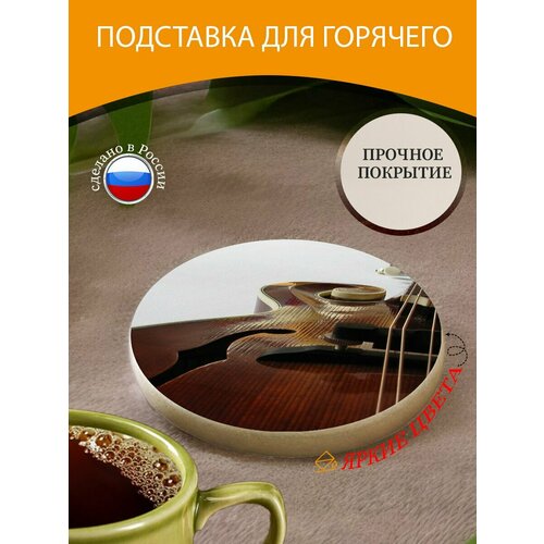 Подставка под горячее "Мандолина, блюграсс мандолина, ф мандолина" 10 см. из блого мрамора