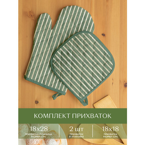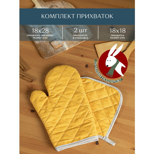 Комплект кухонный рогожка (прихватка 18х18, прихватка-рукавица 18х28) "Унисон" рис 30004-16 Basic