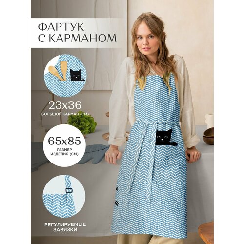 Фартук саржа премиум 65х85 с карманом "Унисон" рис 33127-1 Lovely cat
