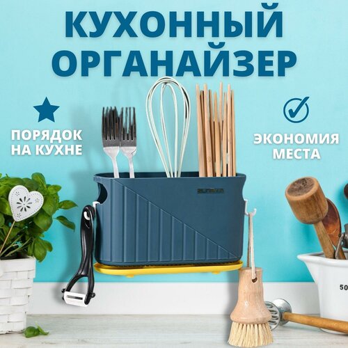 Органайзер кухонный / Держатель кухонный для столовых приборов / Сушилка для посуды / Зеленый