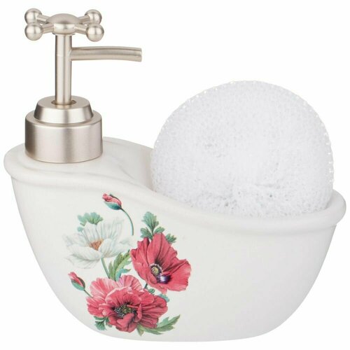 Дозатор для моющего средства с губкой и щеткой Lefard "Маки", доломит, 0,5л