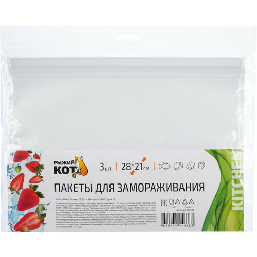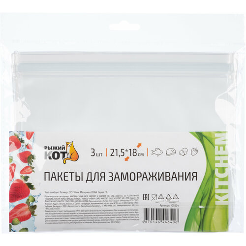 Пакеты для замораживания, 21,5*18 см, 3 шт