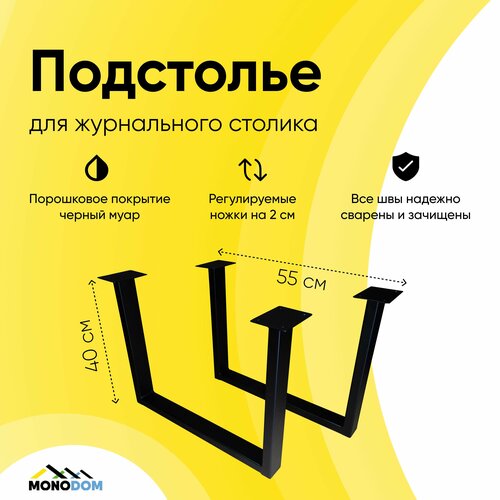 Подстолье для журнального стола в стиле лофт 40х55см, из трубы 50х25,2шт, черный муар (ножки регулируемые)