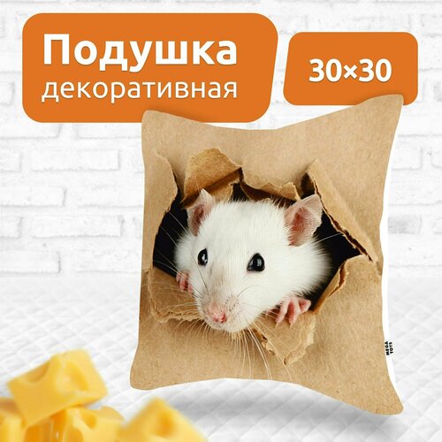 Подушка декоративная на диван для дома MEGA TOYS детская в подарок с принтом 30x30 Мышонок