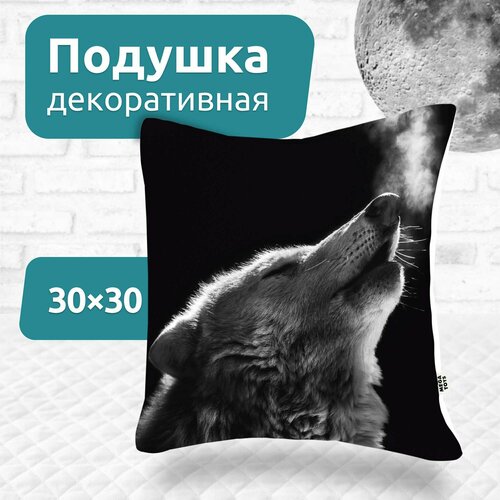 Подушка декоративная на диван для дома MEGA TOYS детская в подарок с принтом 30x30 Волк