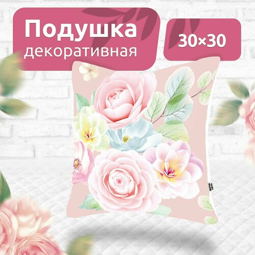 Подушка декоративная на диван для дома MEGA TOYS детская в подарок с принтом 30x30 Шиповник