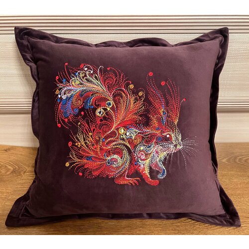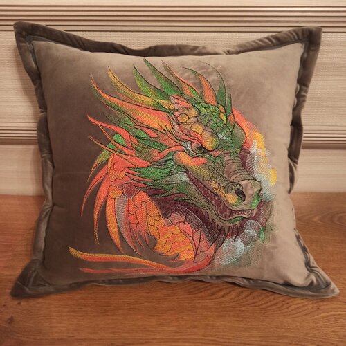 Декоративная подушка, съемная наволочка с машинной вышивкой из бархата 45х45. Дракон 2024