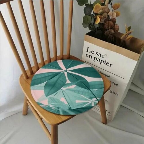 Подушка-сидушка на стул 30x30см, зеленая, с рисунком растений