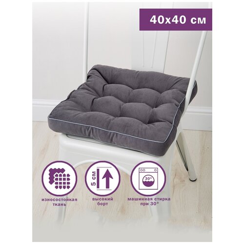 Подушка на стул Bio-Line /Декоративная подушка/Сидушка высоким бортом/Табуретник/Квадратная/40х40 см/серый
