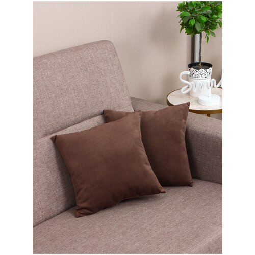 Подушка декоративная Bio-Line/Набор 2 шт/ Комплект из 2 шт./Квадратная/Дом и дача/40х40 см/ шоколад