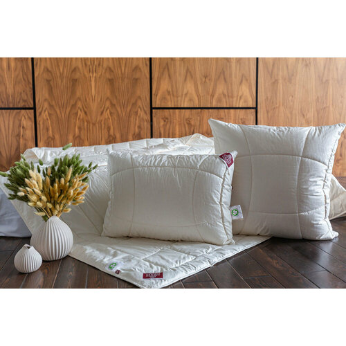 белыйБренд: German Grass, Австрия; Страна производства: Россия; Размер: 68x68 см; Наполнитель: в чехле - 100% шерсть мериноса, во внутренней подушке - объемный наполнитель 4-L; Вес наполнителя: 1100 гр.; Вес подушки: 1,6 кг; Степень к...