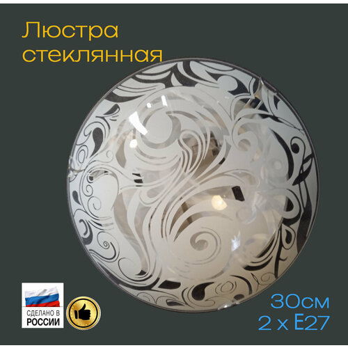 Светильник круглый потолочный стеклянный под лампочки накладной / Люстра для низких потолков с цоколем Е27/Иней30