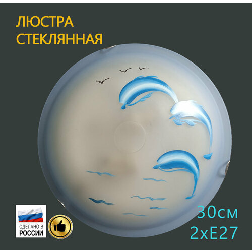 Светильник круглый потолочный белый стеклянный под лампочки накладной / Люстра для мальчика в детскую комнату с цоколем Е27/Дельфины30