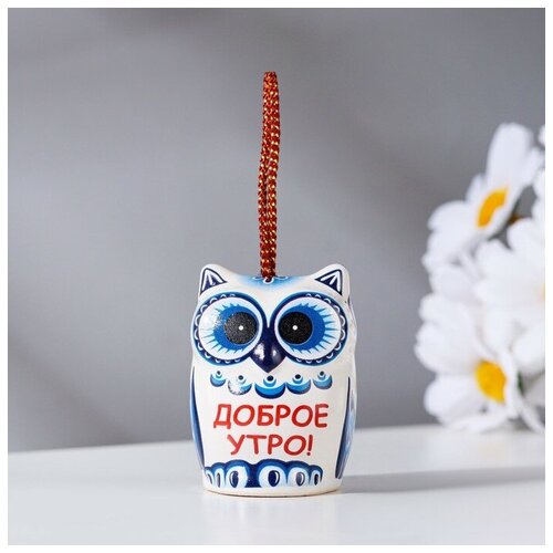 Сувенирный колокольчик "Сова. Доброе утро", гжель, 5см