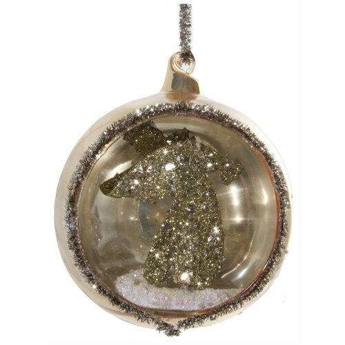 Стеклянный шар с ангелочком и золотой мишурой, 10см