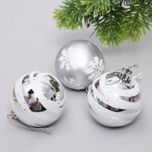 Новогодние шары 6 см (набор 3 шт) «Загадка», Серебро