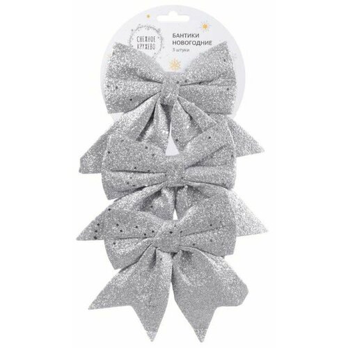 Новогоднее ёлочное украшение "Бант" серебристый блестящий, 3 штуки.