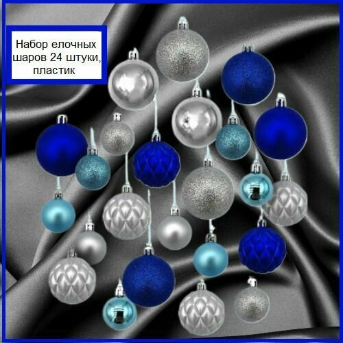 Набор елочных игрушек, 24 шт, "Синий иней", от 4см до 10см, пластик