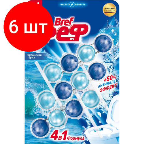 Комплект 6 штук, Блок для унитаза Bref сила-актив Океанский бриз, 3x50г