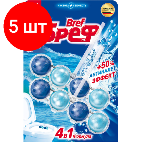 Комплект 5 штук, Блок для унитаза Bref сила-актив Океанский бриз, 2x50г