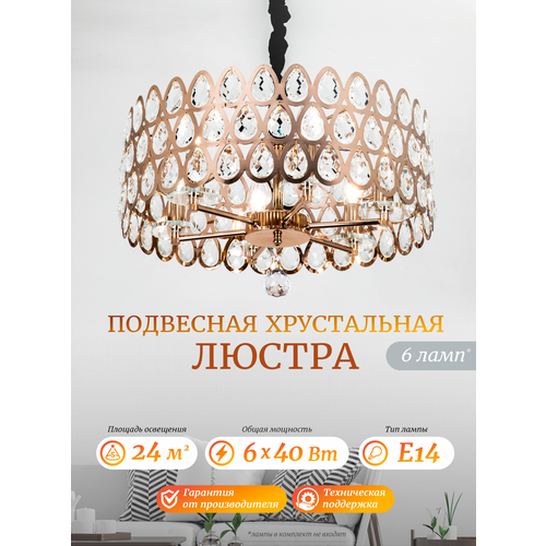 Люстра подвесная, хрустальная, регулируемая по высоте MODELUX ML.9101.6 GD