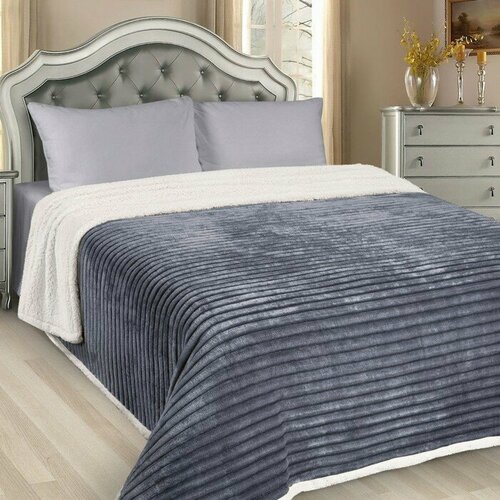 Плед покрывало 220х240 см на кровать плюшевый и теплый "Полосы"