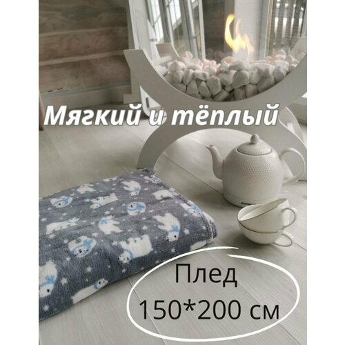 Плед "Серый с мишками" - мягкий и уютный, новогодний и детский, 150x200