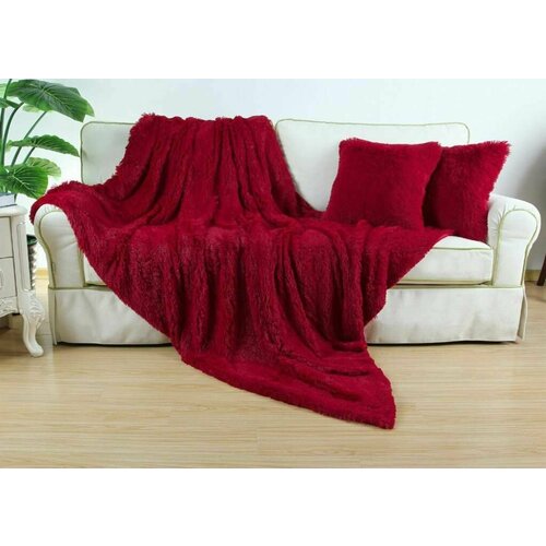 Плед пушистый на диван кровать Евро 200х220 травка бордовая