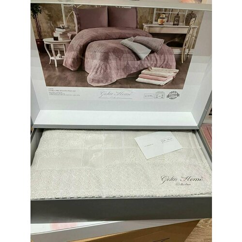 Подарочный набор комплект постельных принадлежностей бренда Gelin Home украсит интерьер современной спальни или детской комнаты. Постельное белье для евро кроватей выполнено из 100% хлопка. Комплект станет достойным дополнением в вашей спальни. Отлично стирается, выдерживая более сотни стирок, сохраняя размеры, цвета и рисунок. Покрывало представлено в размере 220 на 240 см, поэтому подходит как для полутораспальной, так и двуспальной кровати, мягкой мебели, а также как плед на диван. В набор входят большое красивое покрывало, простынь 240 на 260 см и два чехла-наволочки для подушек 50х70 см. Комплект текстиля для спальни выполнен из гипоаллергенной ткани хлопка, способной без потерь выдержать множество стирок. Уютный плед согреет вас дома и на даче, он заменит одеяло в зимнее время во время отдыха на диване или ночевки на надувном матраце в гостях у бабушки. Покрывало евро на кровать произведено в Турции из качественного полотна. Покрывало двуспальное будет стильным элементом интерьера в Вашу спальню, детску