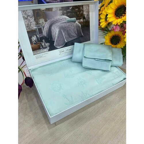 Покрывало с простыней и 1 наволочкой Gelin Home MARINE (1,5 сп, бирюзовый)