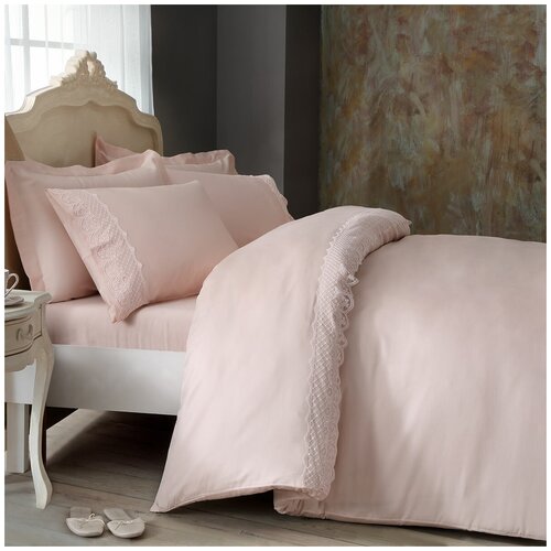 Комплект (простыня, наволочки, покрывало) La perla Tivolyo (розовый), Евро (с покрывалом)