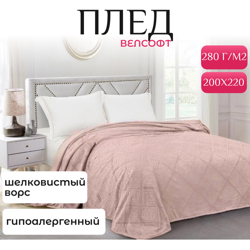Плед 180х200см, велсофт, 280г/м пэ100%